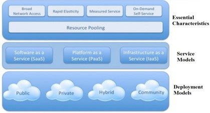 ע"פ NIST, ניתן להגדיר ענן באמצעות 5 תכונות המאפשרות להבדיל בין ענן לטכנולוגיות אחרות (רלוונטי מאוד בעולם הרגולציה), 3 תצורות שירות ו-4 תצורות פריסה.